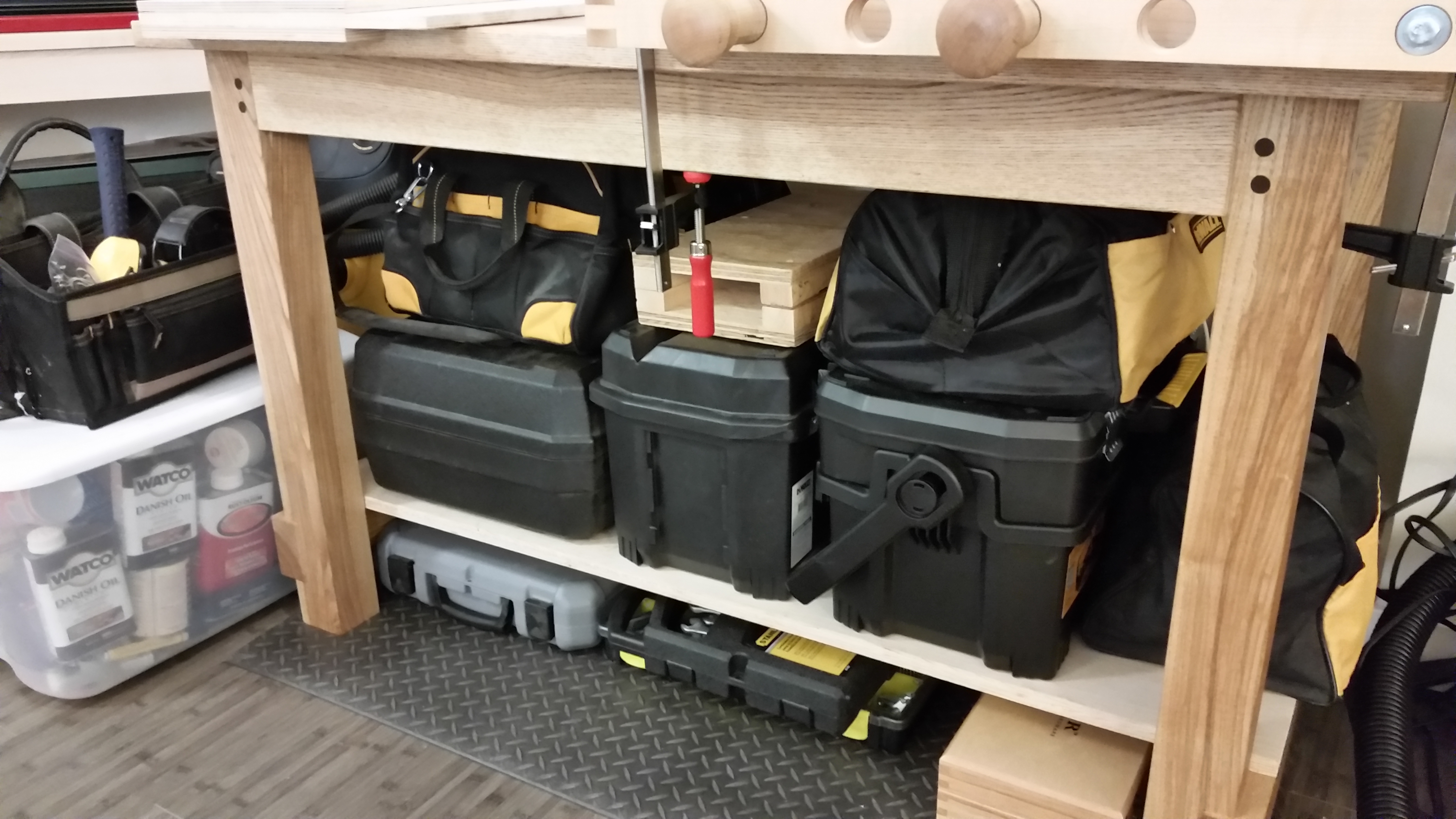 I should probably also mention the clear plastic bin of glues and finishes and the general purpose tool bag