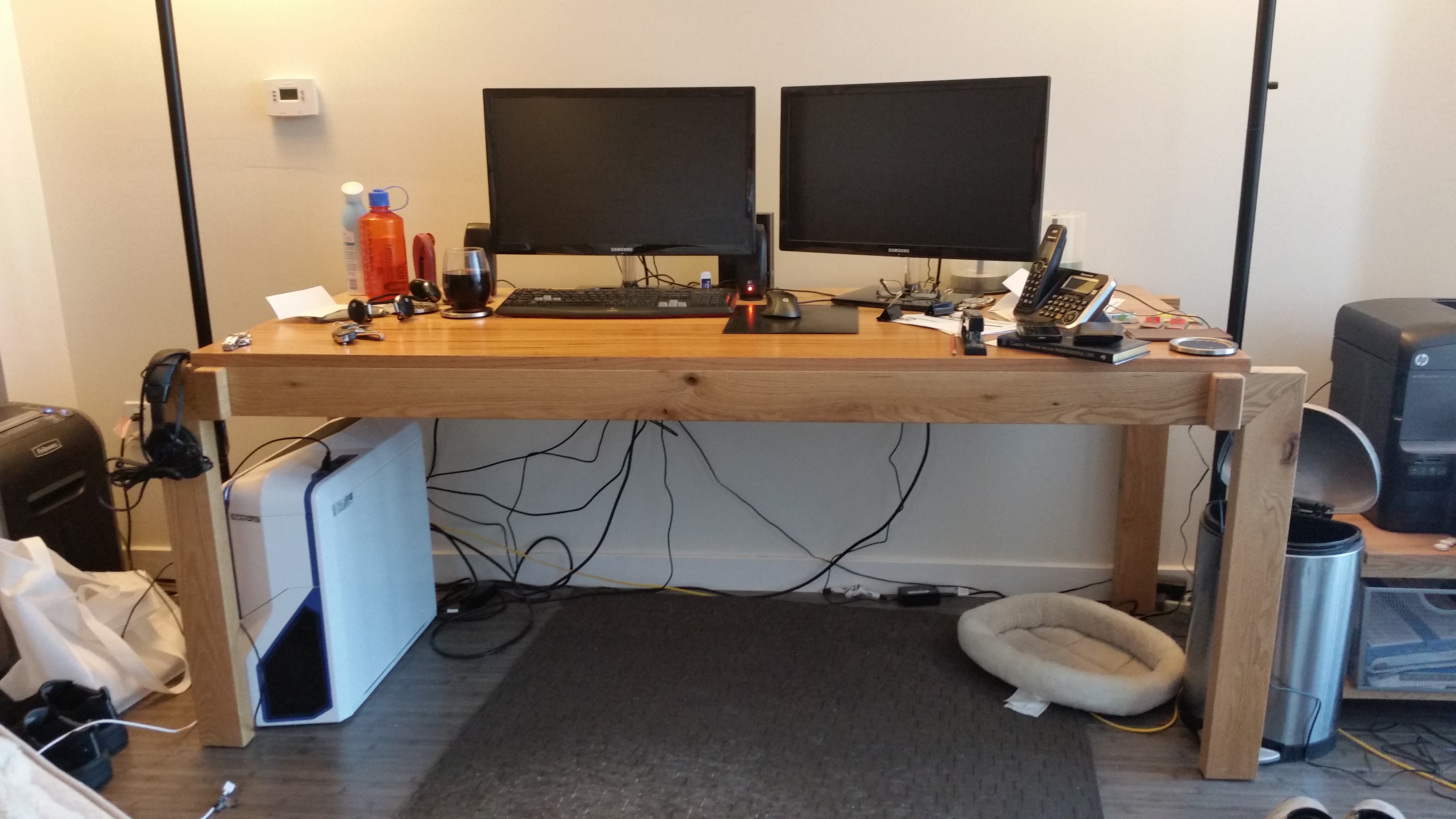 It’s been a long time coming, but I think I’m ready. I’ve progressed sufficiently in my woodworking that it’s finally time to revisit my red oak desk. I still love the design (mitered half lap joints continue to be a personal favorite) and I’m quite satisfied with the overall size and shape (which is why the revisit hasn’t been a high priority), even the joints were cut almost entirely with a plunge router. I don’t even think I owned a tenon saw at that point.