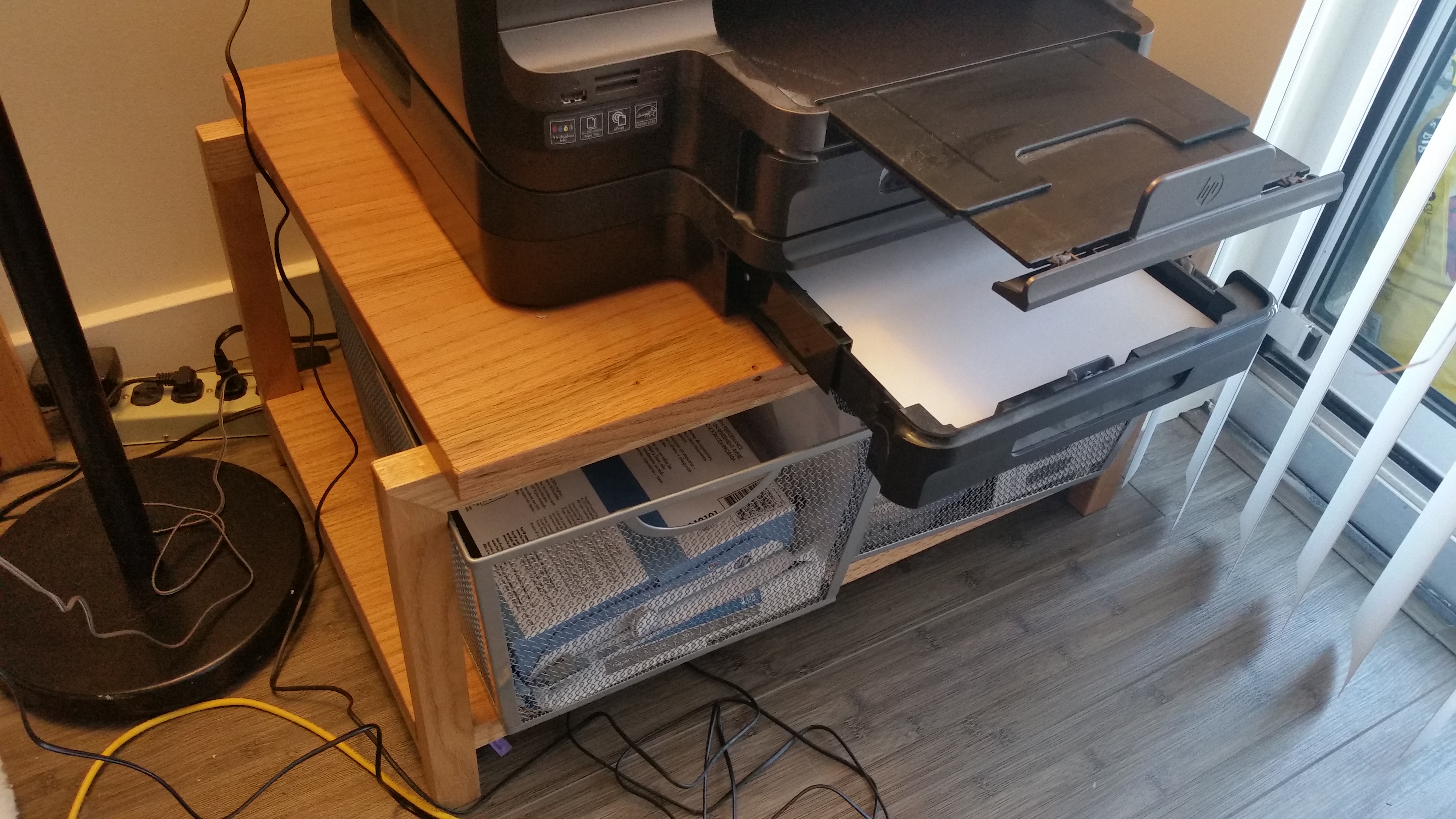 There is also a matching printer stand that fits two metal baskets on the bottom shelf (because I didn’t know how to make drawers back then).