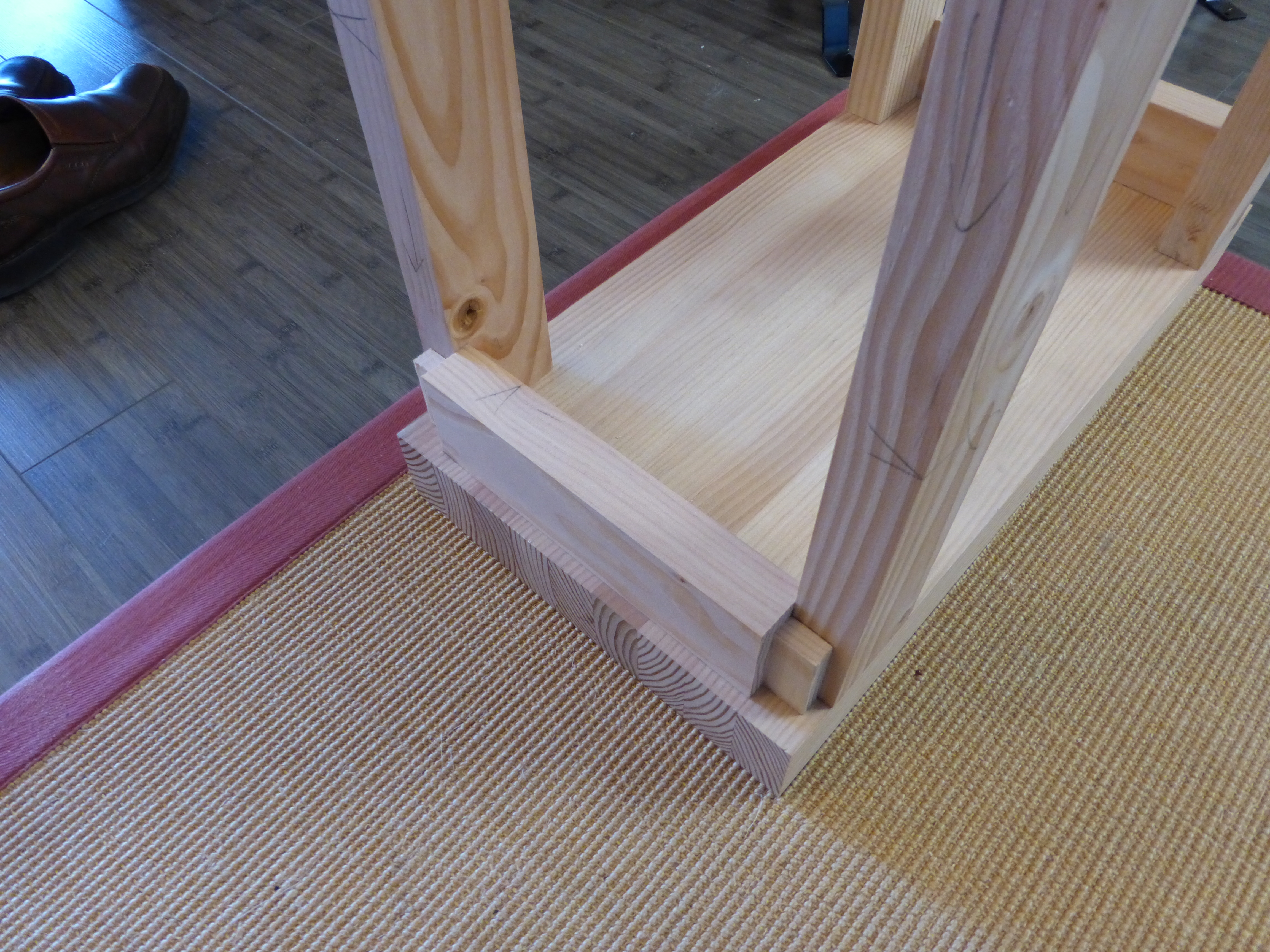Speaking of shortcuts, I have also decided I’m not going to mortise the front and back rails into the legs. Instead, I will half-lap and screw them into the insides of the legs, mainly because I’d like the ability to remove or re-position the slatted shelf if necessary in the future. Mortising those rails into the legs would make that much harder. Plus, it will save me a bunch of time (and I really enjoy the ease of cutting half-lap joints).
