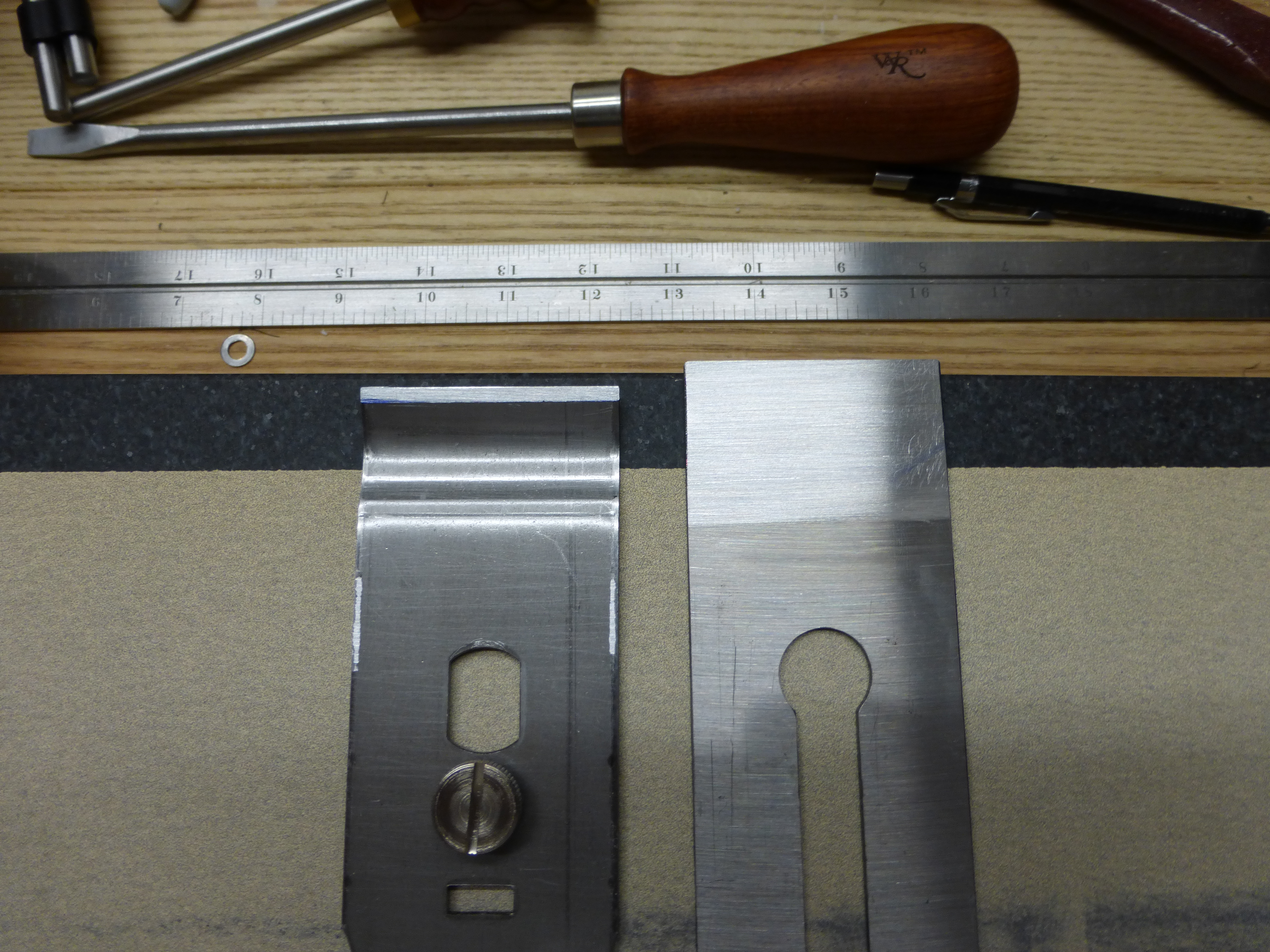 Before anything else, I knew I wanted to replace the plastic handle and tote. I cannot thank Greg Droz at http://www.drozsoldetymestanleytotesandknobs.com/ enough for his excellent work and great price point on a replacement tote and knob. Made of rosewood, they fit the modern plane perfectly and have a great look and finish. I highly recommend you check him out.