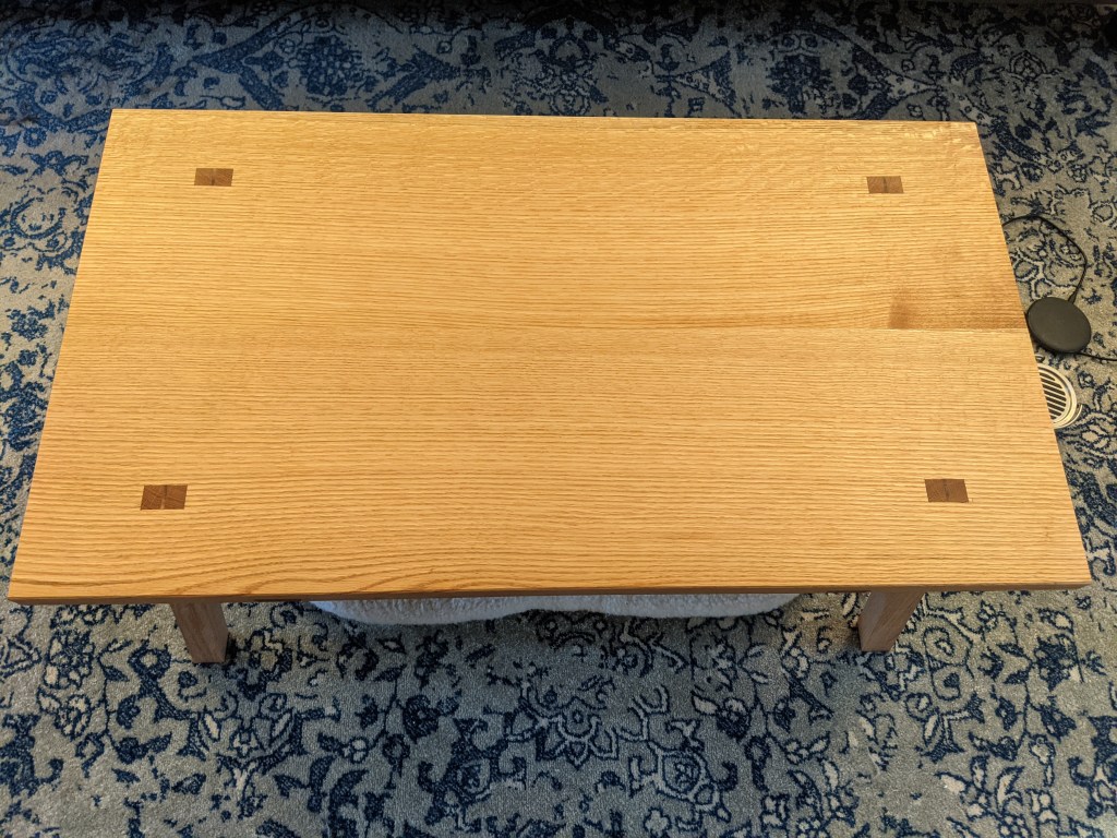 When last we left my foray into the Chinese low workbench form, I had made a 48″ sawbench out of 8/4 Clear Vertical Grain (CVG) Douglas Fir. That bench has served me very well and I love look of the wedged rectangular tenons more and more each day. In fact, I love it so much that I recently made a new coffee table using the same joinery in quartersawn red oak.