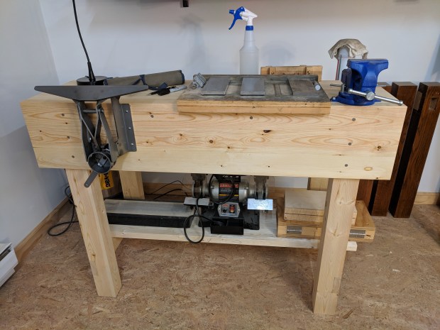 As I was making the bench, I had the Saalburg workbench in my mind’s eye. But looking at it now, I don’t think one could ever mistake the two. In any event, this bench is more for sitting than for woodworking. I’m not saying I won’t bore some peg holes. I just don’t plan do much more than home handiwork on it.