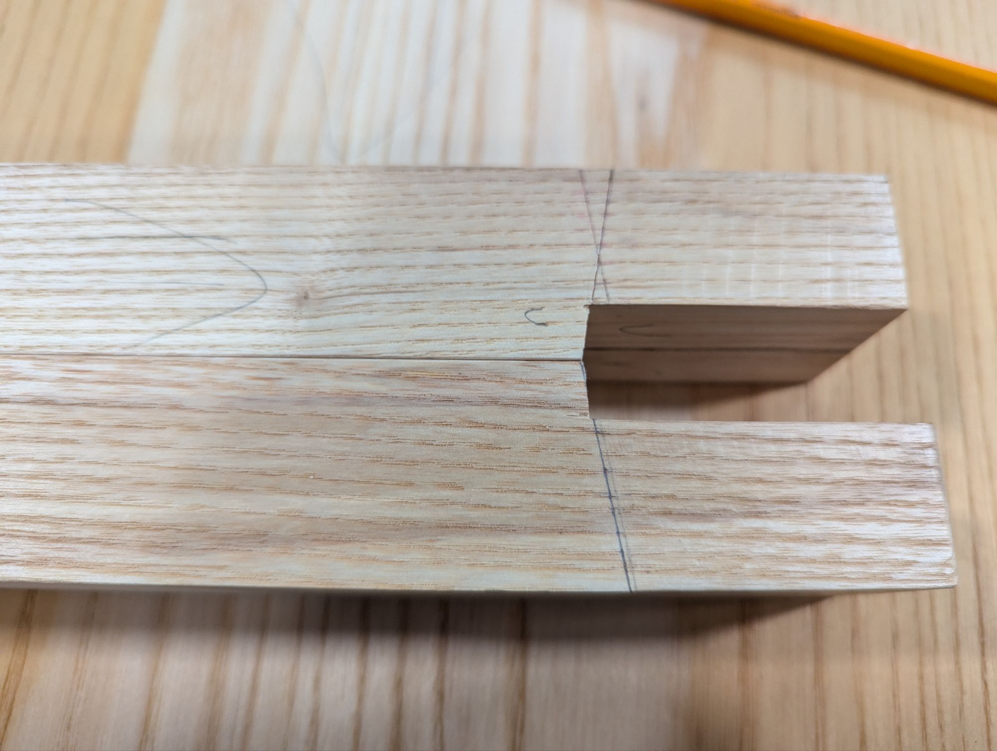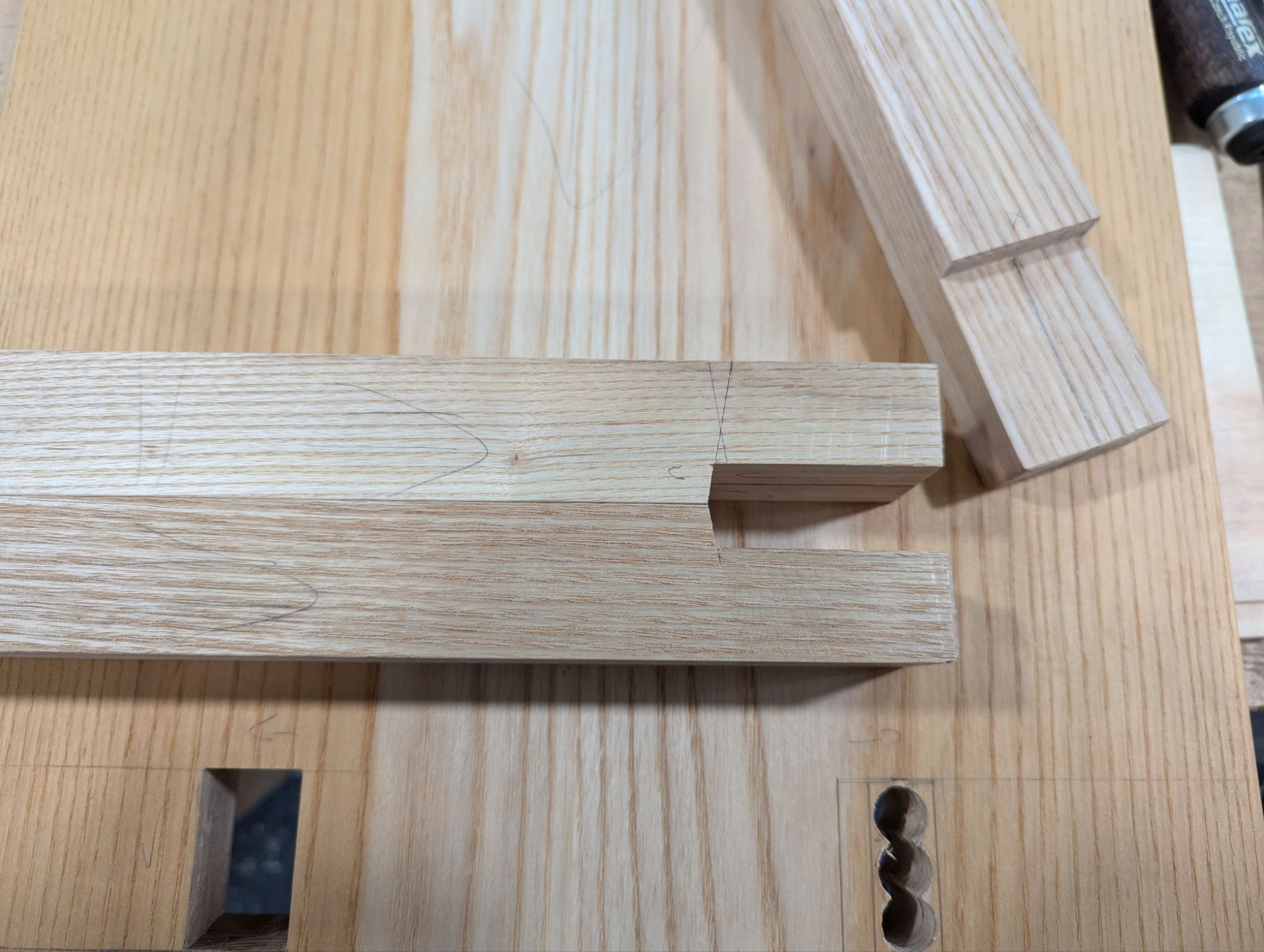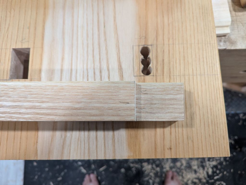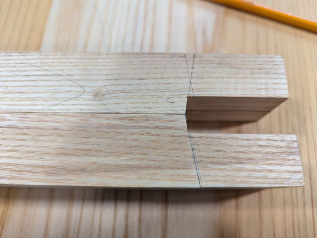 Funny thing is: when working in stock of that thickness and this application (where strength really matters), you really can’t do posh Western European dovetail patterns with super narrow pins. I like wider pins anyway and these travel tool chests are a good excuse to make the pins noticeably beefier. Like so: