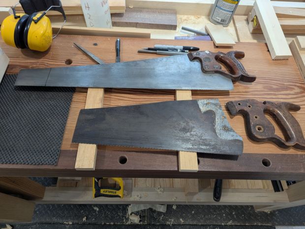Well, vintage hand saws are abundant and cheap. If the tote is in decent shape, and the plate itself still has some life, odds are it’s got a kink in the tooth line. And that kink is probably around 1/4 or 1/3 of the way back from the toe. You’ll never get that kink out (and even if you do, you probably just work hardened the area around the kink so it will just kink again, or shear). But what if you could just angle grind off everything past the kink and make a shorter saw? Suddenly, that saw would fit into a travel tool box of manageable size.