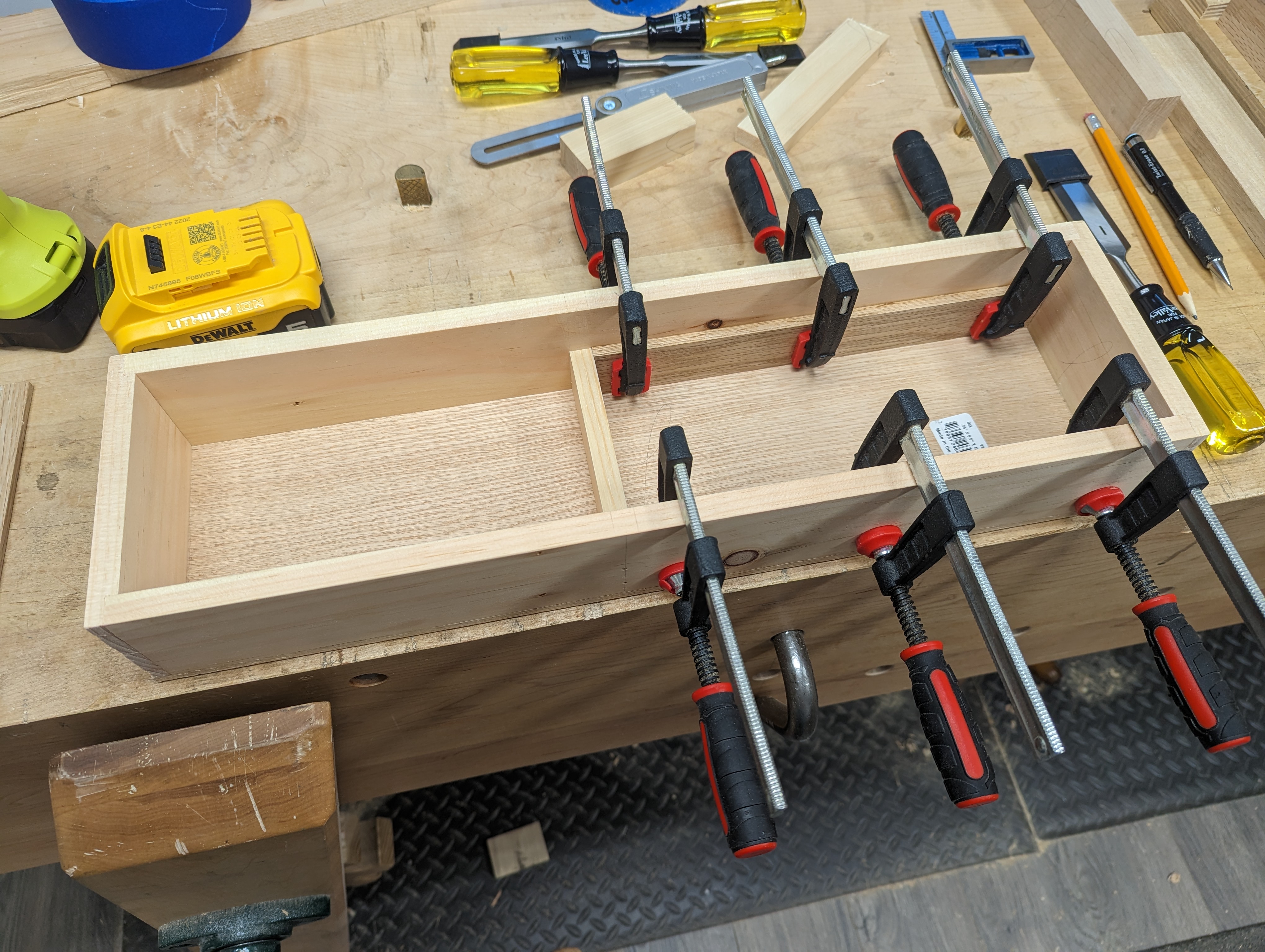 The divider also let me use up some shorter oak scraps for the inner runners.