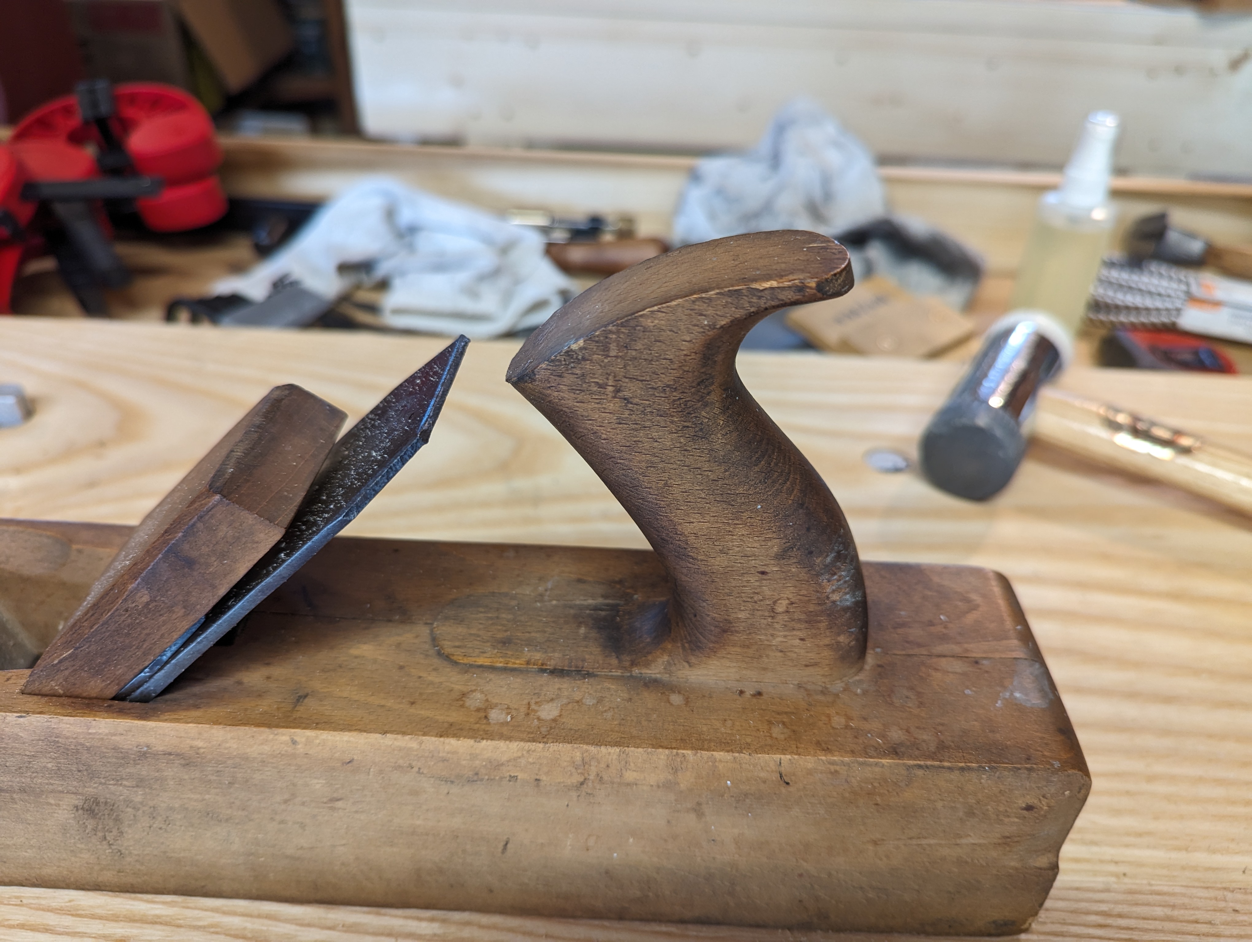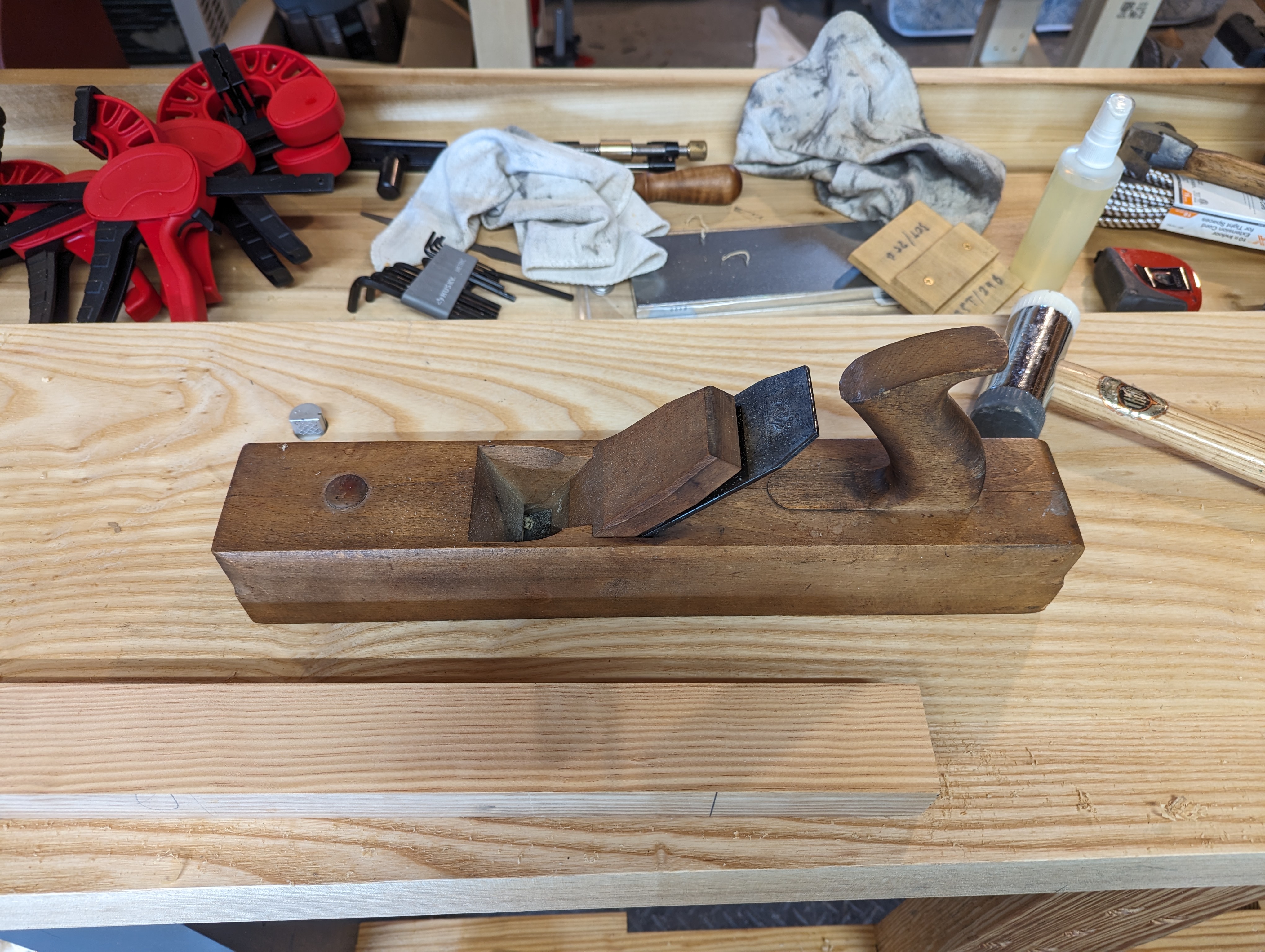 A full size, modern block plane is probably a bit much for this setup. Perhaps I’ll clean up a slightly smaller vintage block plane from the user pile. We’ll see.